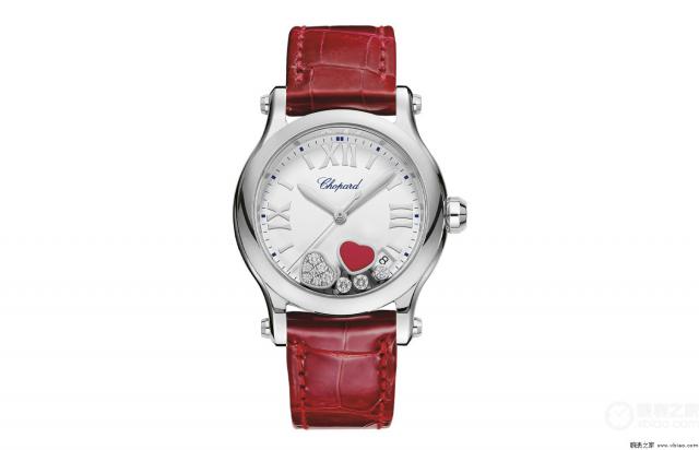 手表评价:假使你不善言辞,不好意思直接说出情意,那么选择这个萧邦。 Happy Heart 手表可以帮助你!红宝石“心形”和钻石“心形”在两个蓝宝石表镜玻璃之间自由旋转,相互陪伴,三颗可旋转的裸钻一起跳舞。Happy 属于萧邦手表的Heart属于 Happy Sport 系列。自 1993 自2008年问世以来,Happy Sport 这一系列是萧邦最具代表性和最受欢迎的手表(特别是对女性而言)。表盘上自由旋转的钻石就是这一系列的标志性设计,展现出活泼奔放的气质。并且 Happy Sport 这一系列手表是第一款将钻石和精刚结合在一起的手表,这种大胆和创意非常令人欣赏。这款手表现在使用 36 mm精刚表壳,呈现柔和曲线。石英机芯内部使用,包括日期显示。红鳄鱼皮表带是点睛之笔,不但与表盘上的红心形相照应,还能激发爱的情感。相信在她看到这只手表的那一刻,一切都在不言而喻!