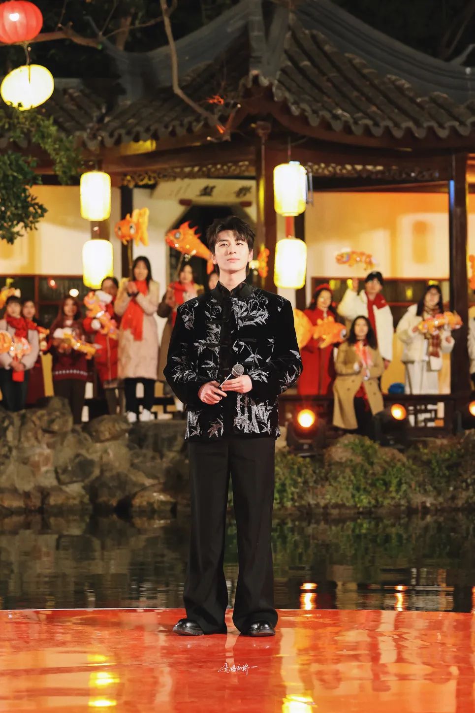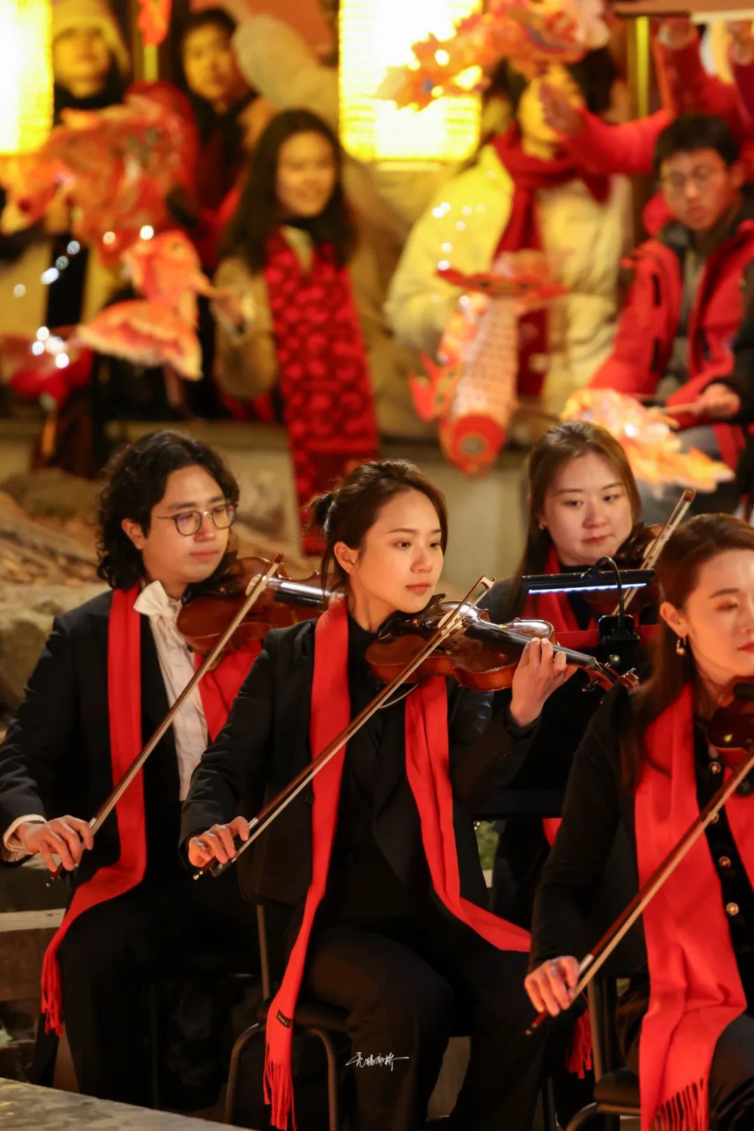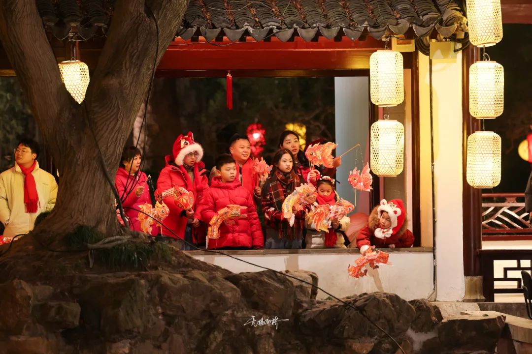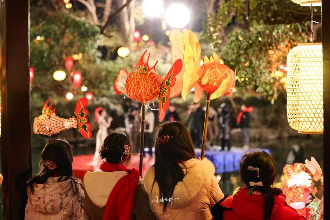 千盏鱼灯曳青巷,万点暖光跃檐。