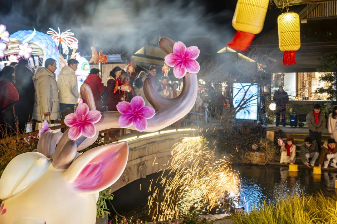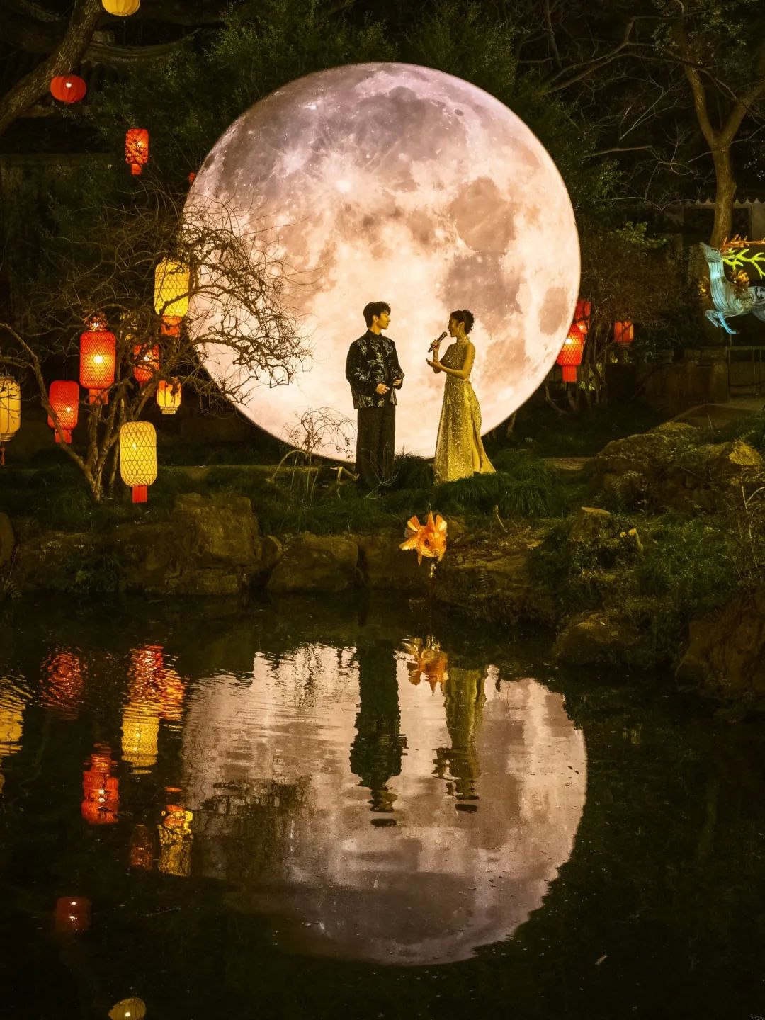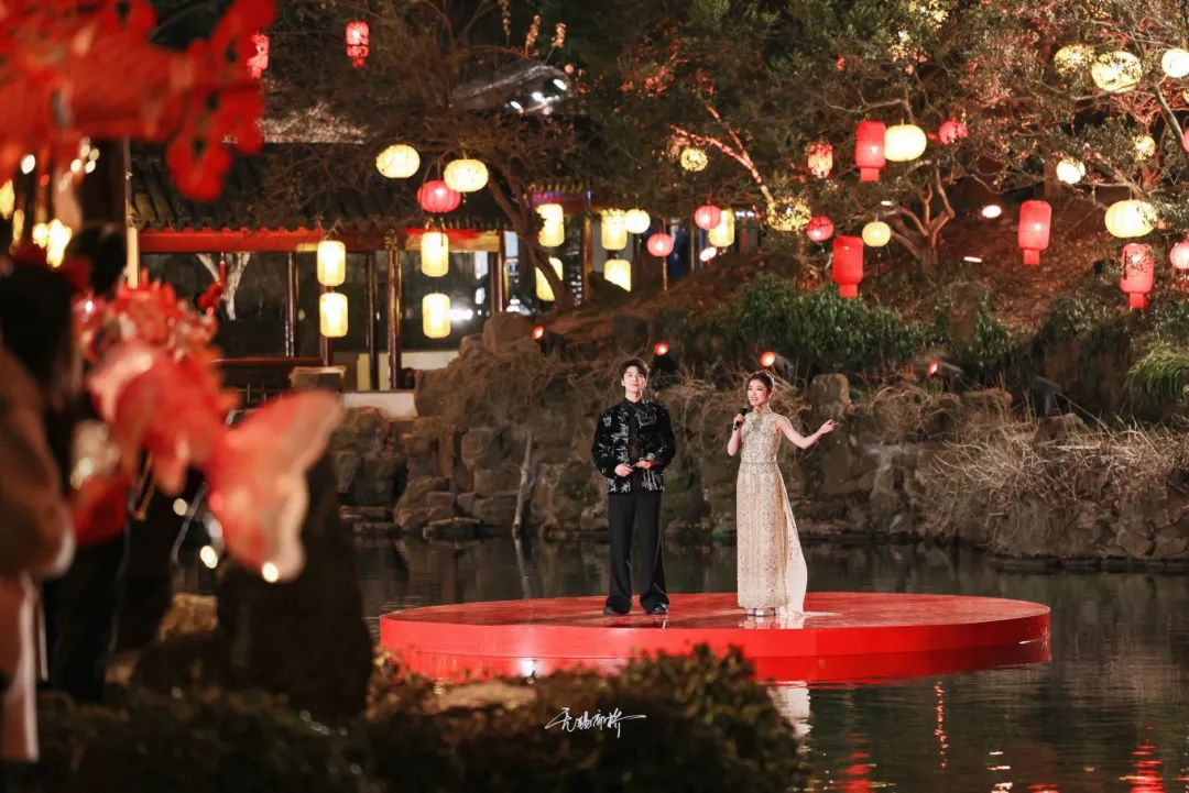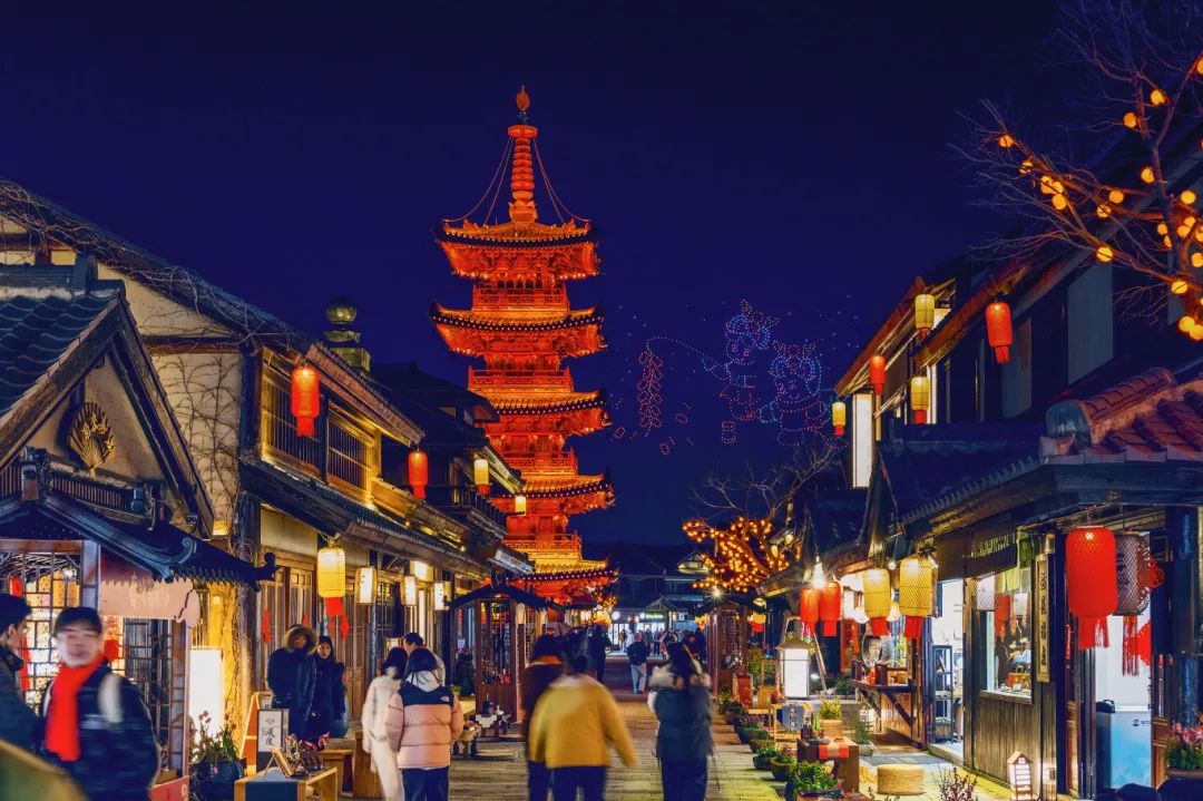 千盏鱼灯曳青巷,万点暖光跃檐。