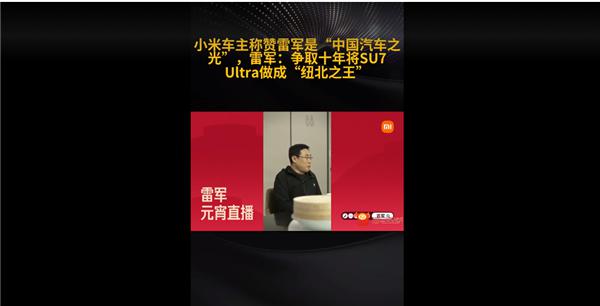 小米车主称赞雷军是中国汽车之光!雷军:SU7 Ultra将成为纽北之首。