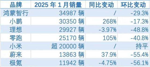 近日,多家造车新势力陆续宣布 2025 第一个月的销售数据显示, 月度汽车消费市场整体表现不如去年年底,不少汽车公司销量出现明显环比下滑。