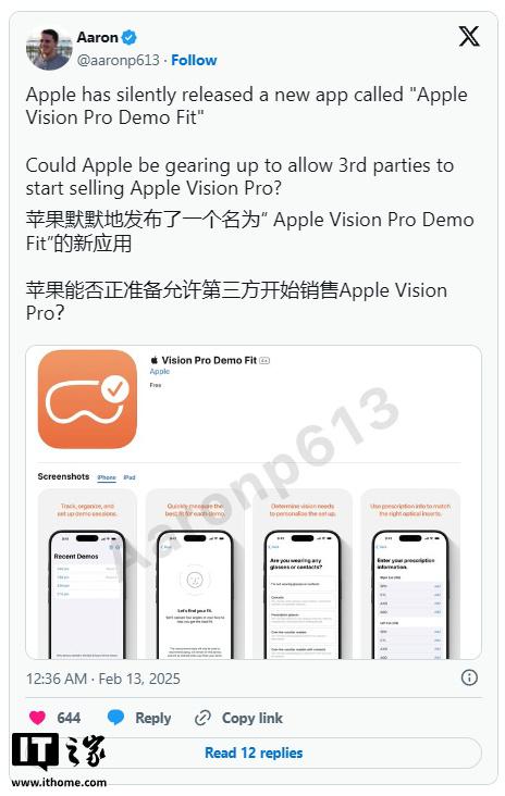 IT 世家 2 月 13 据最新消息,苹果预计本周五将向媒体发布相关消息。 Apple Vision Pro 目前,苹果通过第三方零售商销售该产品的可能性最大。