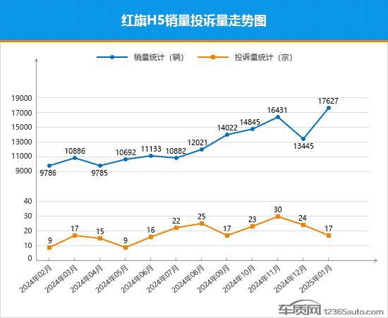 近几年来,“燃油车不行”、网络上充斥着“燃油车已走到尽头”等批评的言论。不可否认,新能源是一个大趋势,但是燃油车仍然有其生存和发展的空间。这一点从 2025 年初第一个月的销售业绩就可以看出来,多种主要燃油车型市场表现强劲。红旗作为其中的一员, H5 在 1 月亮也迎来了里程碑时刻,月销连续第一。 9 月破万,环比上升 创造新的历史记录,31.1%。从过去一年的销售变化可以看出,整体上呈现出稳步上升的势头。反观红旗 H5 月度投诉表现,虽然有个别月度投诉数量发生变化,但整体走势还算稳定,1 月度投诉持续第二个月实现环比下降,口碑表现呈上升趋势。根据本月投诉销售比例,数值较上月有明显下降,目前已降至个位,位居榜单上所有车型前列。在短期内,红旗 H5 已积累足够的上升势能,市场表现有望再上新台阶。