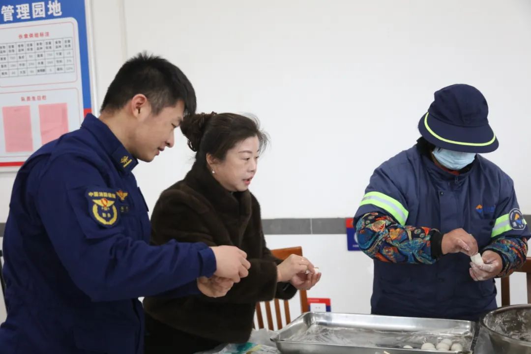 “包饺子!”揉面,调馅...在食堂,社区居民手把手教消防队员包饺子,现场非常热闹。消防员家属的到来,让平日里严肃紧张的消防队充满了深情。