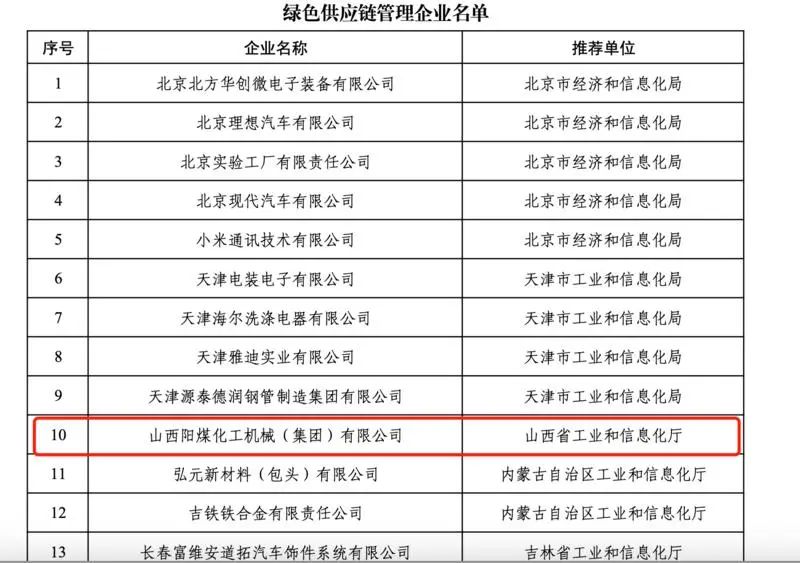 原标题:山西23家企业和公园名单!工业和信息化部公布了2024年绿色制造名单