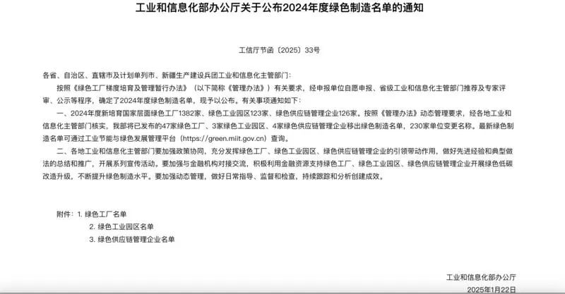 山西省23家企业和公园上榜!工业和信息化部公布了2024年绿色制造名单