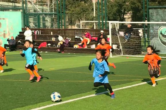 冬训场上,阳光照射在浦玮身上,长长的影子延伸到一群跑过的七八岁女孩身上,仿佛反映了杨浦青少年足球的新活力。
