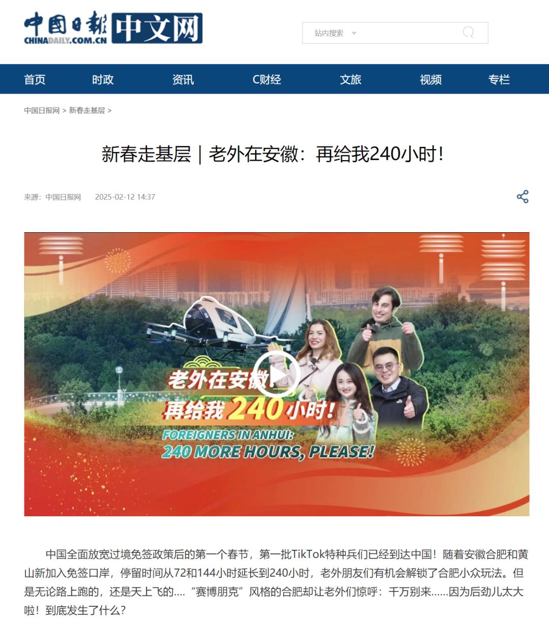《中国日报》重磅报道:外国人在安徽过年,“240小时不够”!