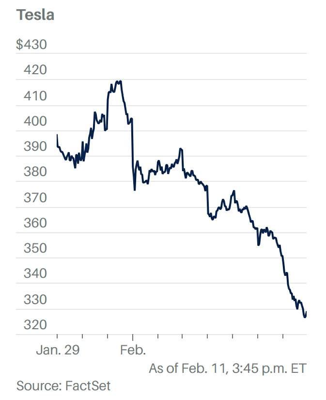 特斯拉拉星期二(2月11日)(TSLA)第五个交易日持续下跌,累计跌幅超过16%。