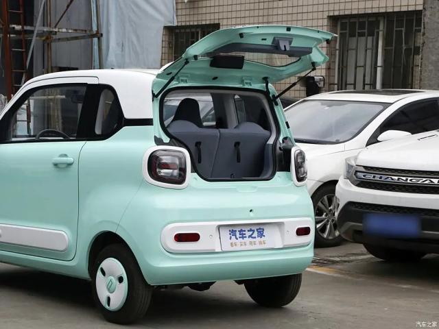 除上述两种升级外,车辆的外观和内饰都与现金一致,我们简单回顾一下。该车提供多种活波可爱的车身配色,主要推广可爱萌酷的造型风格。车面采用简单的封闭式造型,Q 两边都有可爱的大灯。就车身长度而言,这款车的长宽高分别是 轴距为3000/1510/1630mm, 1953mm。奔流小马选择了三门四座的规划,尾门的开启位置在车尾中间,整体尺寸不大。