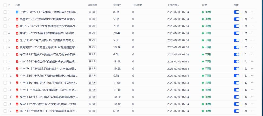 首先,我们在航海知识库上传了N篇关于水上交通事故的报告,并调用嵌入式模型来处理文档,以实现更准确的搜索,帮助大语言模型生成高质量的答案。