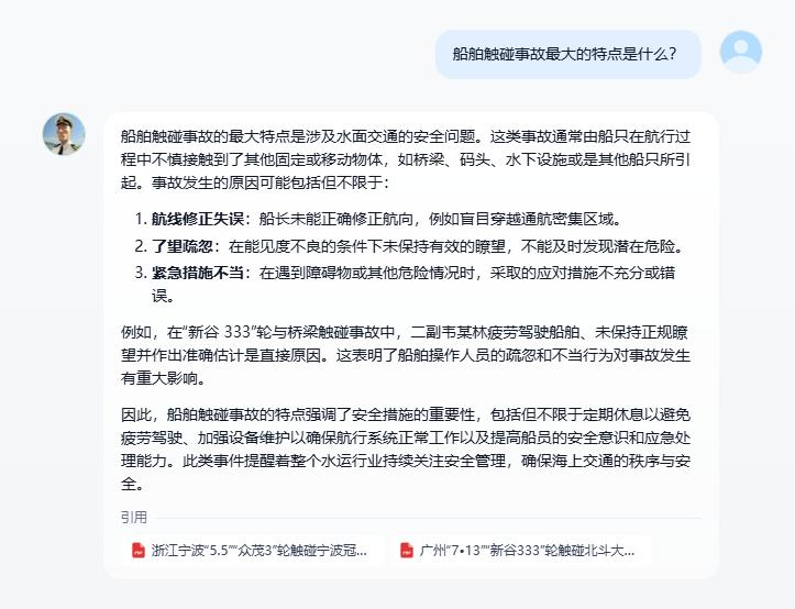 通过以上脑洞大开的演示,我想来海青们都大模型。 对当地知识库在海事通航中的应用有一个初步的了解。