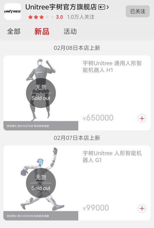 宇树在其他电商平台上并没有上架这两款新产品。
