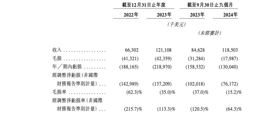 根据多项资料显示,2021-2023年和2024年前三季度,图达通的营业收入分别为460万、6630.2万、1.21亿、1.19亿美元;每年/期间损失分别约为1.14亿、1.88亿、2.19亿和1.30亿美元。