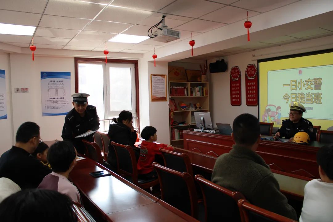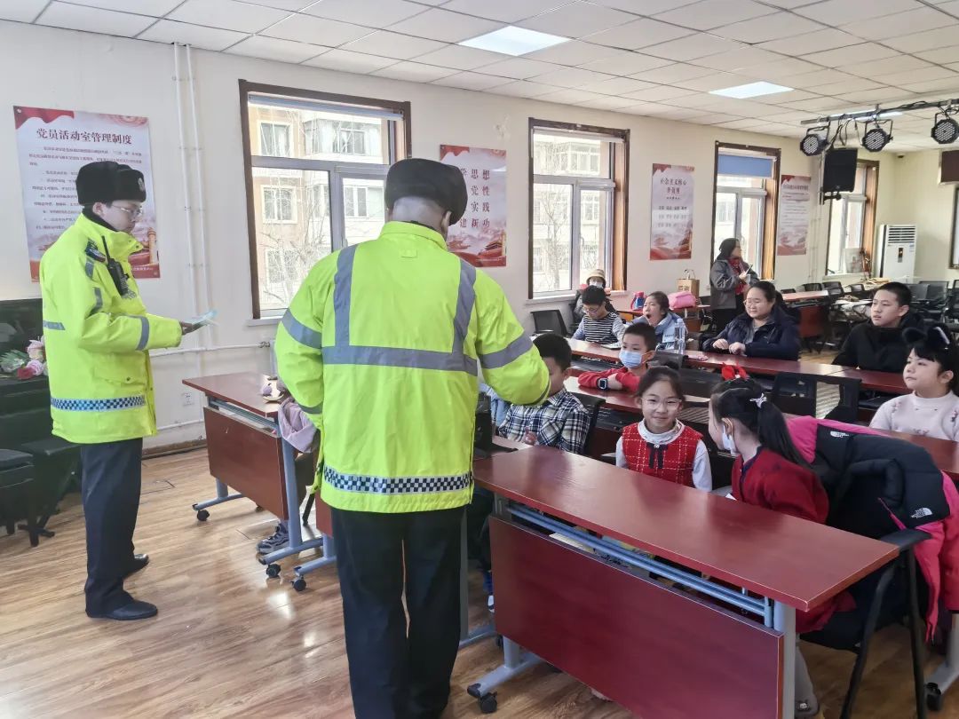 上课时,六纬路大队交警耐心讲解交通法规,将真实的交通违章和事故案例以幽默的语言转化为通俗易懂的文明交通知识。交警不仅提醒学生冬季步行和骑行时的注意事项,还教他们如何帮助家长判断如何保证与前方车辆的安全距离,并特别强调遵循交通指示灯的重要性。