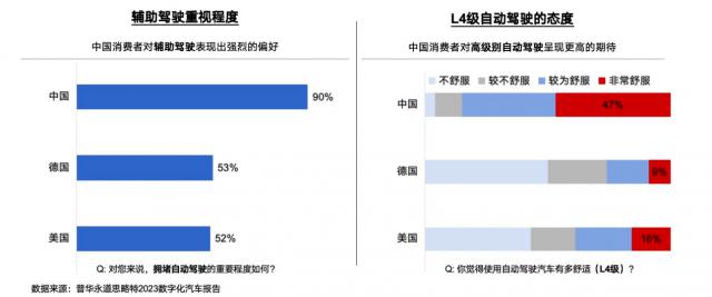 从理论上讲,考虑到美国和德国的道路条件, L4 自动驾驶体验可能比中国好。尤其是中国很多城市的道路经常面临拥挤,随时可能面临突然刹车。然而,即便如此,国内消费者对自动驾驶的舒适性仍然表现出很高的认可度,这是一个幸福的问题。因此,他们愿意购买智能驾驶汽车,这也是目前市场的基本趋势。