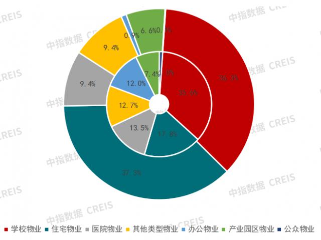 就招标物业类型而言,学校物业比例为 35.6%,与 2023 年度基本持平,占比最高。住宅物业占比 17.8%,较 2023 年度大幅下降;医院物业占比 13.5%,较 2023 每年都在上升。2024 2008年,办公物业占比 12.0%,较 2023 年显着提高 11 %。
