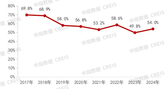 市场份额略有上升,仍处于较高水平。2024 2008年,从新建签约项目的建筑面积来看, 5 预计企业占有的市场份额为 54.0%,较 2023 年小幅上升 4.2 %。从历年的数据来看,代建头部企业的市场份额始终保持在较高水平,项目拓展能力依然突出。