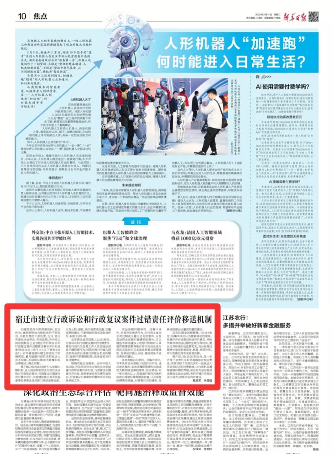 媒体聚焦 | 建立宿迁市行政诉讼和行政复议案件过错责任评估移交机制