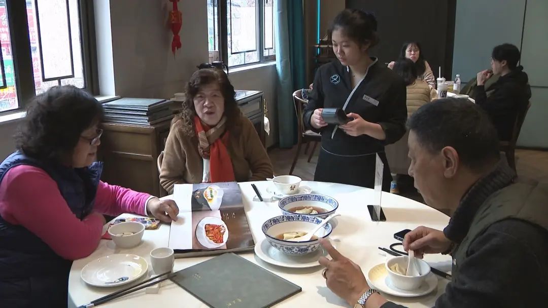 记者在福州路上的老正兴看到,香椿鲜肉馄饨的相关内容已经摆放在大堂的显眼位置。一些对香椿鲜肉馄饨情有独钟的市民,早就忍不住急切。听说今天上市了,他们很早就来品尝这个春天的美味。看着热气腾腾的香椿鲜肉馄饨,郑阿姨赶紧用勺子舀了一个馄饨,吹了两口热流,张开嘴轻轻咬了一口。突然,沁人心脾的香味随着呼吸渗透到体内,满足感十足。「香椿馄饨是一种清香的味道,梅干菜馄饨是一种菜香,都很好吃。”郑阿姨去年没吃东西,所以今年特意赶早来这里吃馄饨,然后点菜。"价格表也看过了,比较适中。老正兴是本邦菜,我是本地人,爱吃这种本邦菜。”