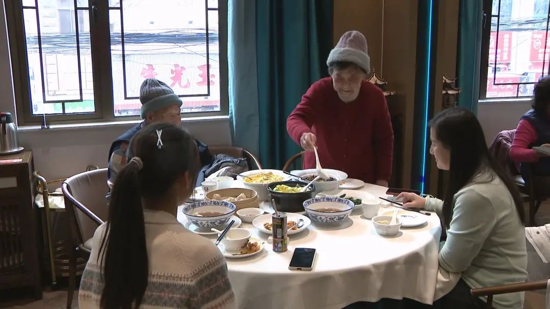 今年的新梅干馄饨也受到许多市民和游客的喜爱。这位来自宁波上海的游客看到这里有家乡的梅干馄饨,赶紧点了一碗,咬了一口就喊正宗。85岁的陈奶奶告诉记者:“这是宁波和绍兴的梅干菜,味道很好,很纯。馄饨皮很韧,肉很好吃,很喜欢。”