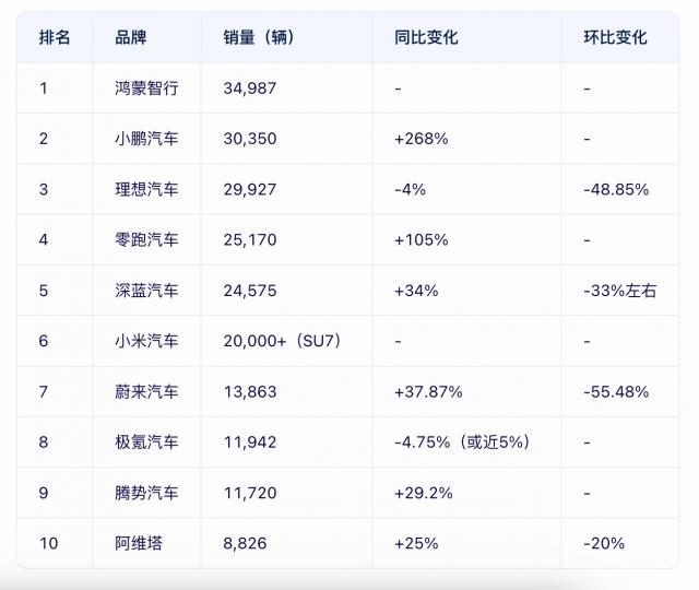 小米汽车:小米汽车凭借小米汽车 SU7 一个模型获得了持续的机型。 4 个月月销 2 万台以上的好成绩,展现了强大的品牌影响力。