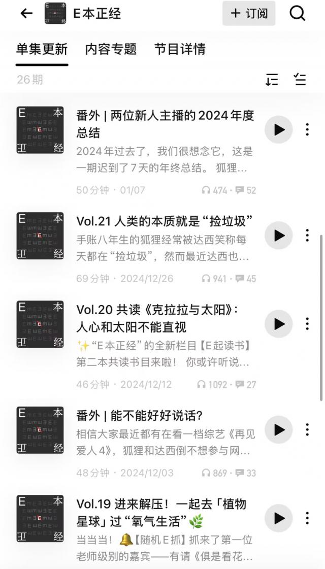 而我自己 2024 2008年最有意义的尝试和突破,就是和朋友、营销编辑达西一起做了一个名字。《E “本正经”的阅读类播客, 4 自本月推出以来,方尖碑《巴比伦城》主题展、《虚构集》文学展、经典系列精读引发了大量讨论,一点点“火”。起初,这只是我们俩的唠叨。 E 人的语音日记,我们希望在这个自由平台上为营销编辑改名,让大众了解营销编辑的工作,撕掉一些恶意的标签,传播我们的声音。即使是微弱的力量,也会给尘土飞扬的好书一个新的曝光窗口。我们邀请了文学展的策划人、文学杂志的高级编辑、朋友俱乐部的营销编辑、作者、百万粉丝读书博主等。如果我们想让隐藏在海面下的冰川露出来,哪怕是太阳下的一厘米;让大家从不同的角度听书、读书、做书的意见、失望和期待;说说埋在心里的人,每天在绝望中重新燃起希望,做出理想的书,开书店,和书在一起的人生理想。我们开辟了“一起读书”的频道,读了几次年轻时打开却几次放弃的书,比如《百年孤独》。;把历史的碎片捡起来,走进相对较小的文学领域,比如《蜕变》,在无法区分梦境和现实的叙述中,