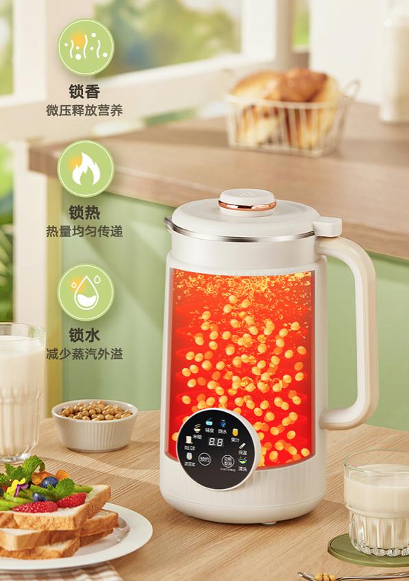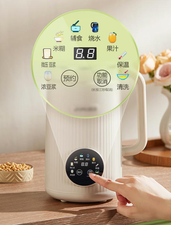 而且它冷热都可以做,不仅仅是打豆浆,还能够制作果汁,汤汁,代餐,奶昔,米糊,辅食,还具有预约和保温功能…