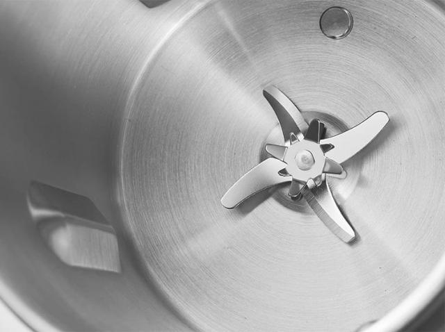 由于它使用的是立体的 20 叶精钢刀头,很锐利。上、中、下多维立体刀片切割,可以让每一层沉淀在下面的豆子磨碎。