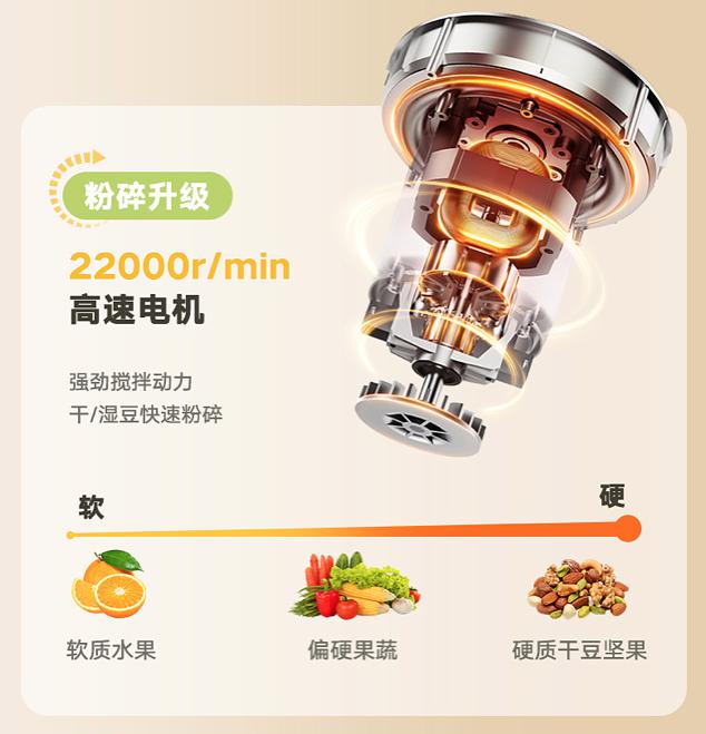 ✅ 22000r/min 高速电动机,强搅拌动力,干燥 / 湿豆子迅速破碎
