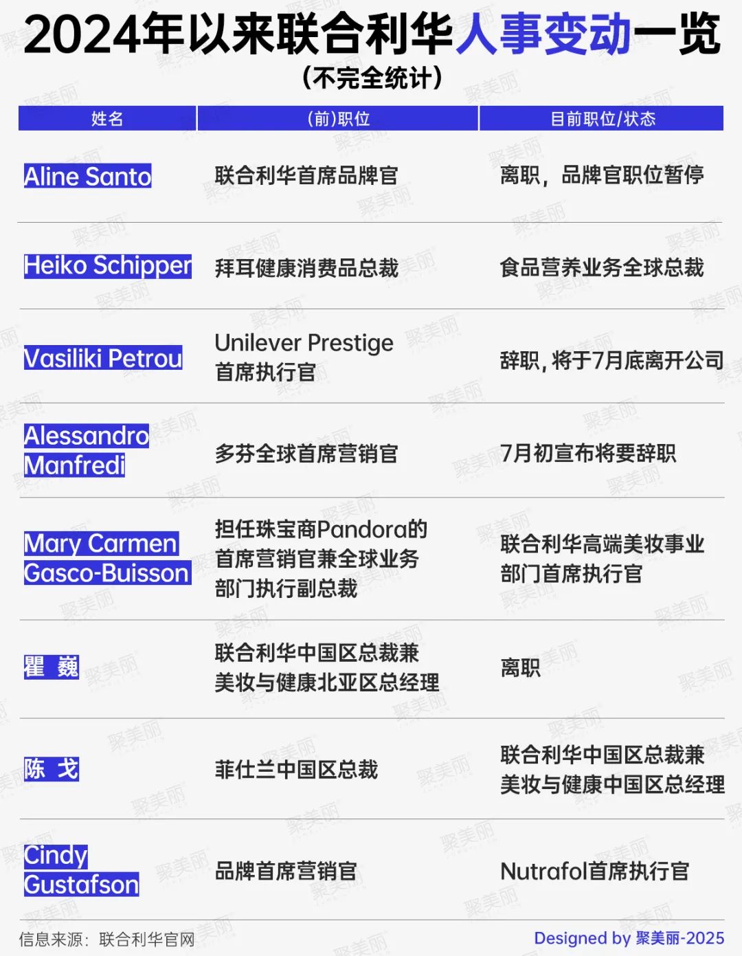 除了高档美妆方面的人事调整外,2024年联合利华还发生了多起人事调整。