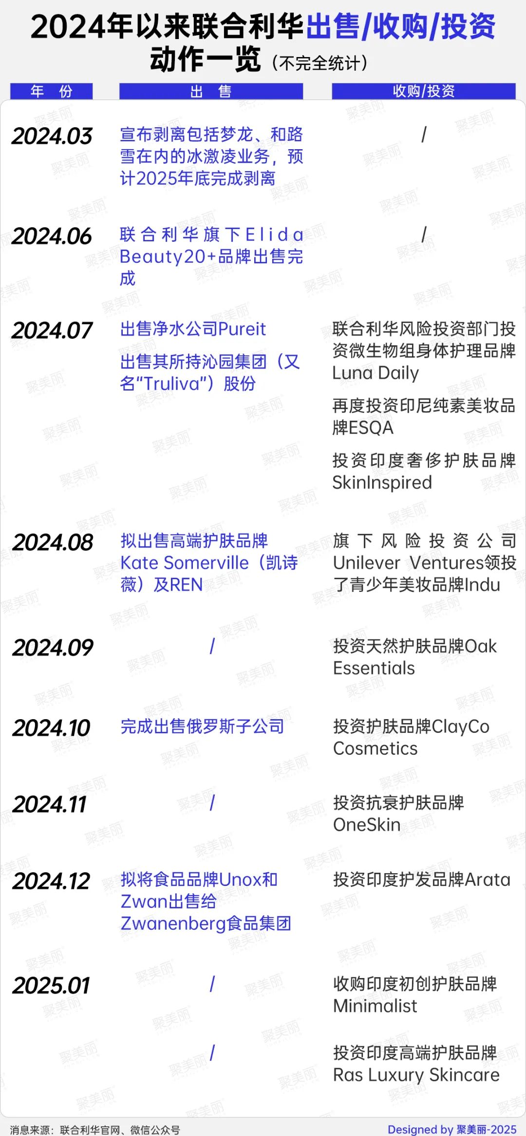 其中,2025年1月22日,联合利华官网发布了一份文件,该文件已经签署了最终协议,收购了印度最初的高端美容品牌Minimalist。据印度CNBC报道,在收购消息传出之前。 TV18官网Moneycontrol报道称,此次交易的目标是3.5亿美元(约合人民币25.52亿元)。
