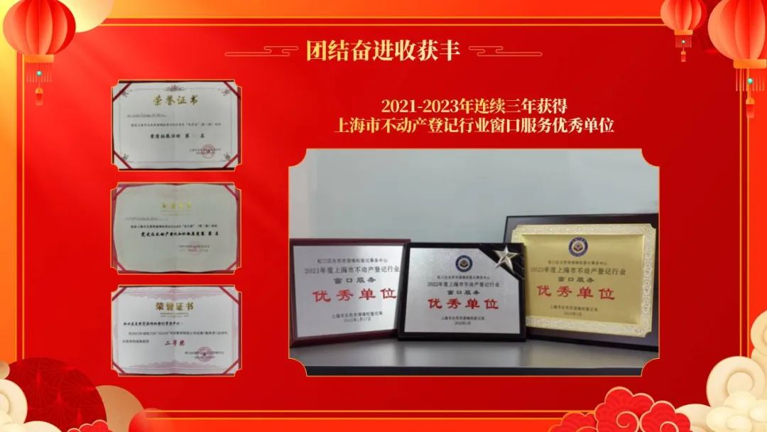 确认登记中心专注于团队建设和业务工作的融合,通过不懈努力,促进房地产登记人的思想政治水平和业务素质的提高,取得胜利。上海队在首届上海市房地产登记职业技能大赛中获得“个人一等奖”和“团队二等奖”,代表上海队在首届全国房地产登记技能大赛中取得了巨大成就。另外,连续多年获得上海市房地产登记行业窗口服务优秀单位,在全国范围内寻找“最美房地产登记人”、在个人、市、区“一网通办”立功竞赛等活动中,国家房地产登记便民利民窗口建设成果显著,获得多项集体和个人奖项。