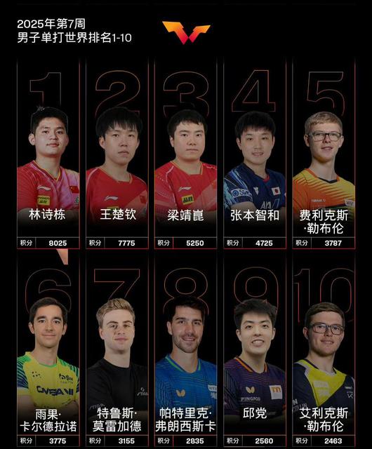 7775 分数,虽然王楚钦还在世界第二,但未来压力很大。他的有效积分包括新加坡大满贯和沙特阿拉伯大满贯,共计。 4000 分数。根据规则,这些积分需要在 3 月 18 每天清零,到时候会对王楚钦产生很大的影响。争夺第一更难,稳定第二是当前的关键。