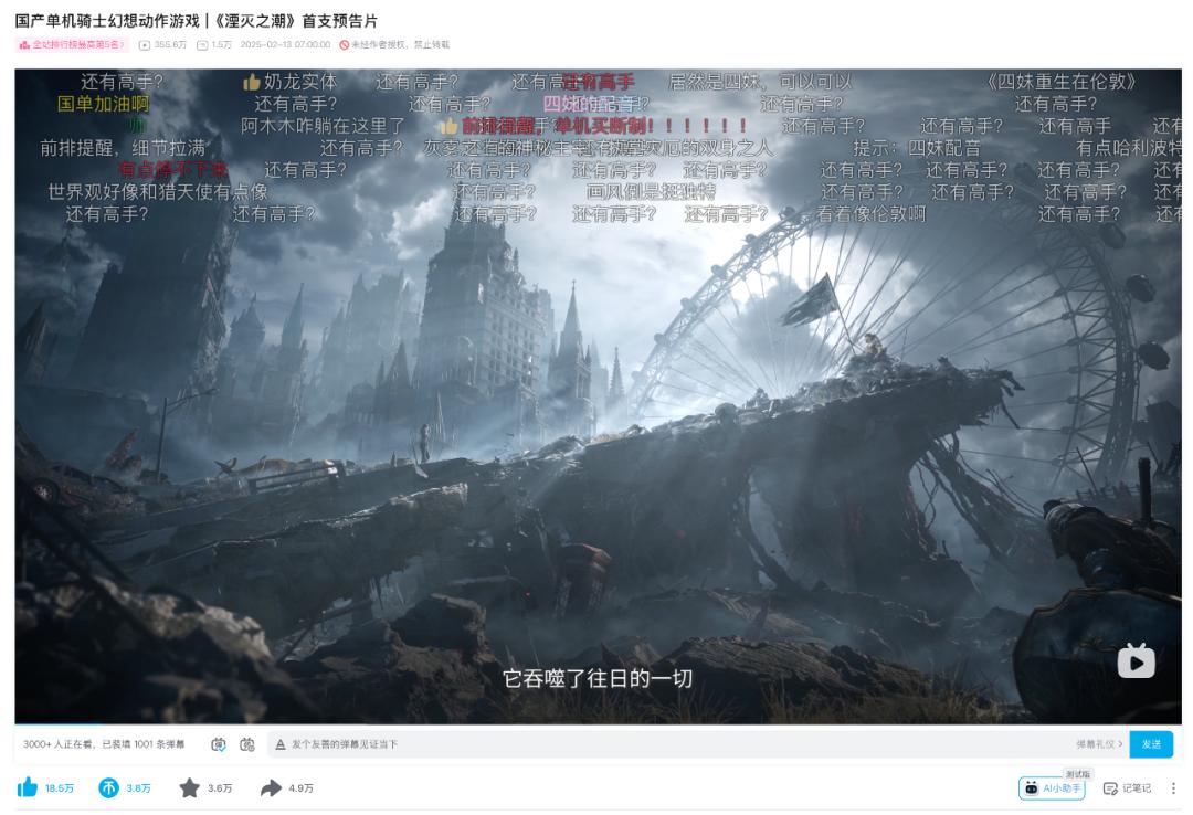 才二月,国内大作那么多,国内玩家真的过年了。所以只过了一个早上,《湮灭之潮》的名字很快就在网上传播开来, 截至写这篇文章的时候,《湮灭之潮》的首次曝光视频已经在哔哩哔哩迅速超过350万,直接成为今天发布会上最受关注的游戏。