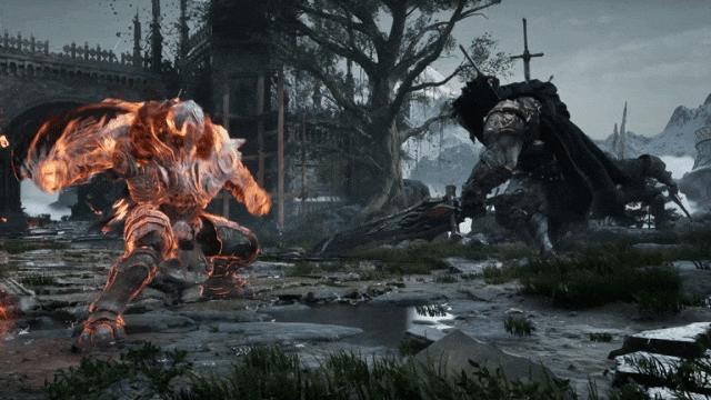 除了战斗,目前视觉上还是挺惊艳的,尤其是视频中一些巨型boss战的画面,会让人想起《战神》等作品。在这些动作游戏中,通常需要这样一场相当夸张的boss战争表演作为惊喜,这样宏大的叙事表演在很多海外3A大作中也有类似的情感体验。