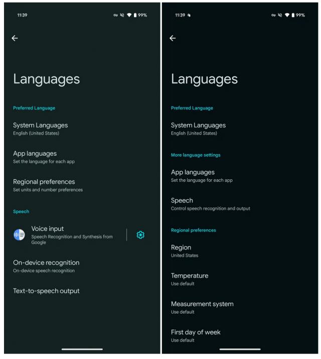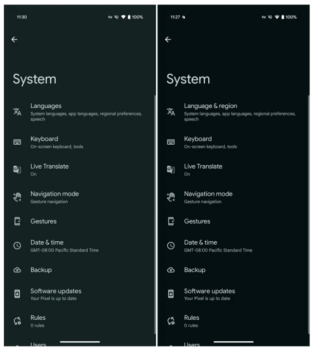 “区域和检测系统”选项被添加到“系统”设置的“语言和区域”中。