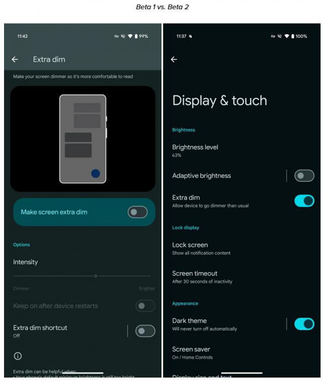 移除“显示和触摸”设置中的“ Extra dim "定制选项。