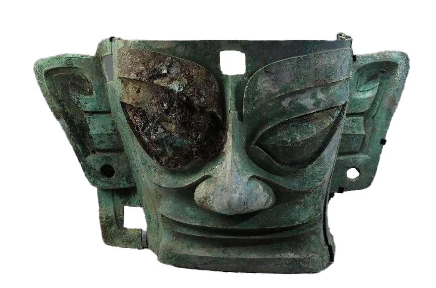 △青铜人头像戴金面罩 四川广汉三星堆博物馆藏藏博物馆