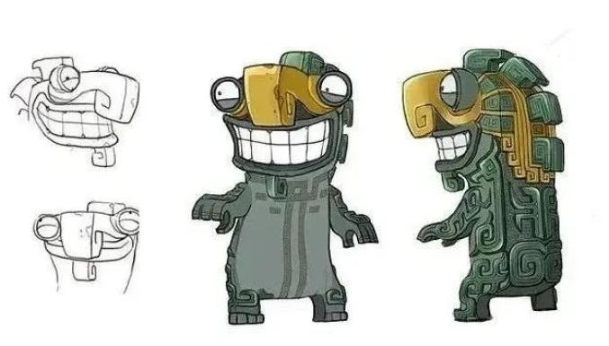 如果你去过三星堆博物馆,你会发现它太熟悉了!粗眉结界兽有夸张的粗眉和蒜鼻,与戴金面具的青铜头像和青铜面具的经典元素高度兼容。