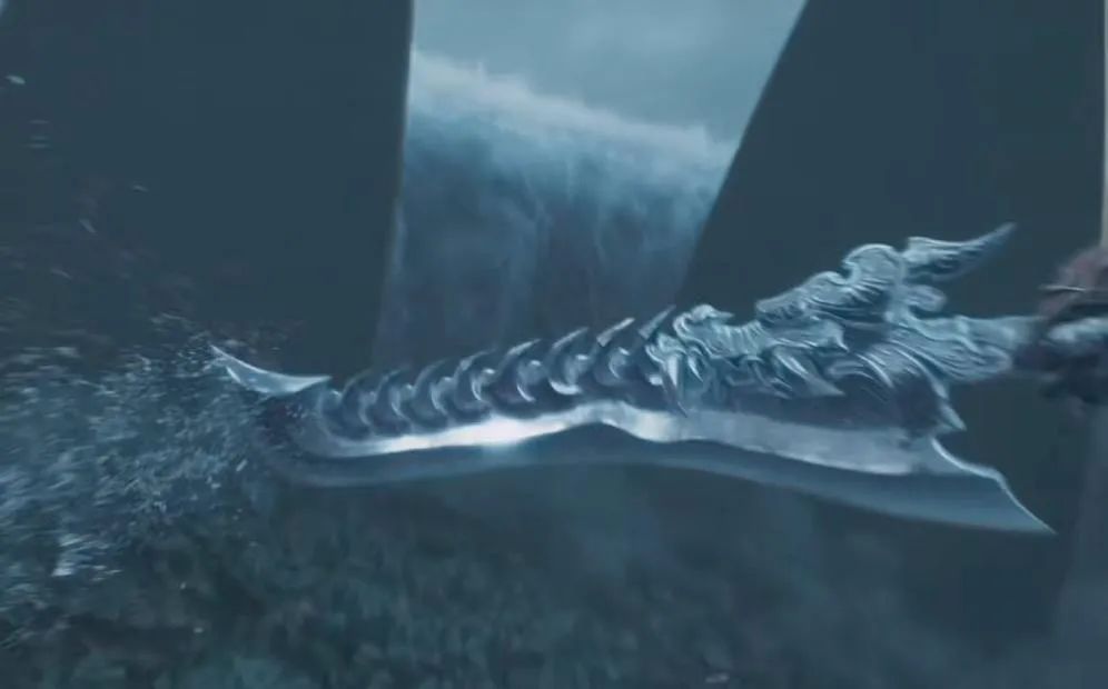 这把刀叫“龙牙刀”,它的设计融合了两种不同的武器元素。前半部分借鉴了商朝时期的青铜刀,是殷商黄铜刀的典型特征,刀尖上挑,刀背附齿,刀腹略收。