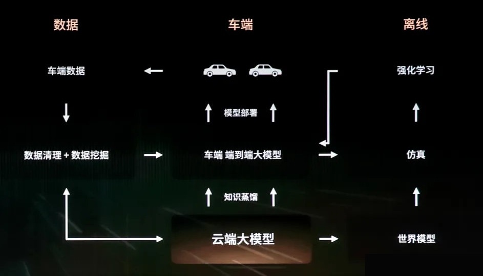 通过部署云端和汽车端两种处理方案,我们不再单纯依靠车辆的本地计算能力,而是利用云端强大的计算率来处理一些复杂的任务,如数据生成、模型训练、模拟验证等。汽车只需要构建轻量级模型和算法升级,完成推理任务。通过云协同实现更高水平的智能驾驶。