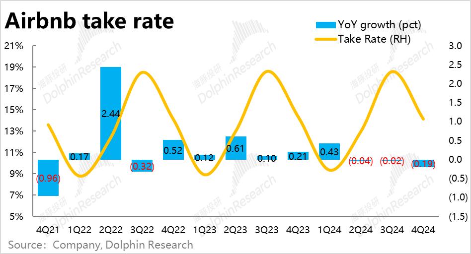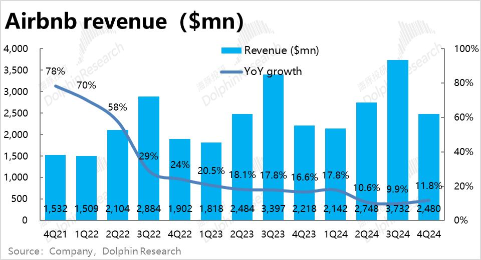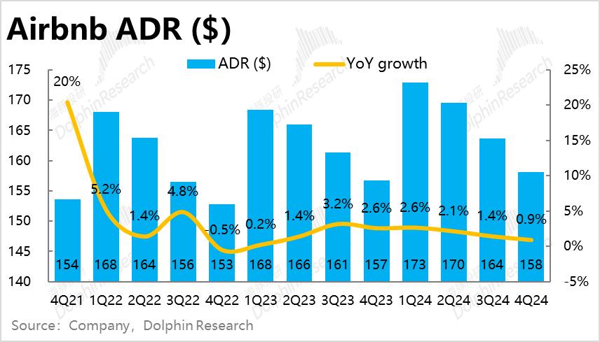 主要是本季夜间预定量同比增长率从上季度的8.5%大幅上升至12.3%,整个加速度为3.8pct,与市场预测的9.6%相比,增长率也远高于市场预测的9.6%。根据海豚投资研究,AirDNA等高频数据确实指向4Q,预订量将比3Q快2.5左右。pct,能够据说增长环比加速市场是有预期的,但实际加速幅度更高。