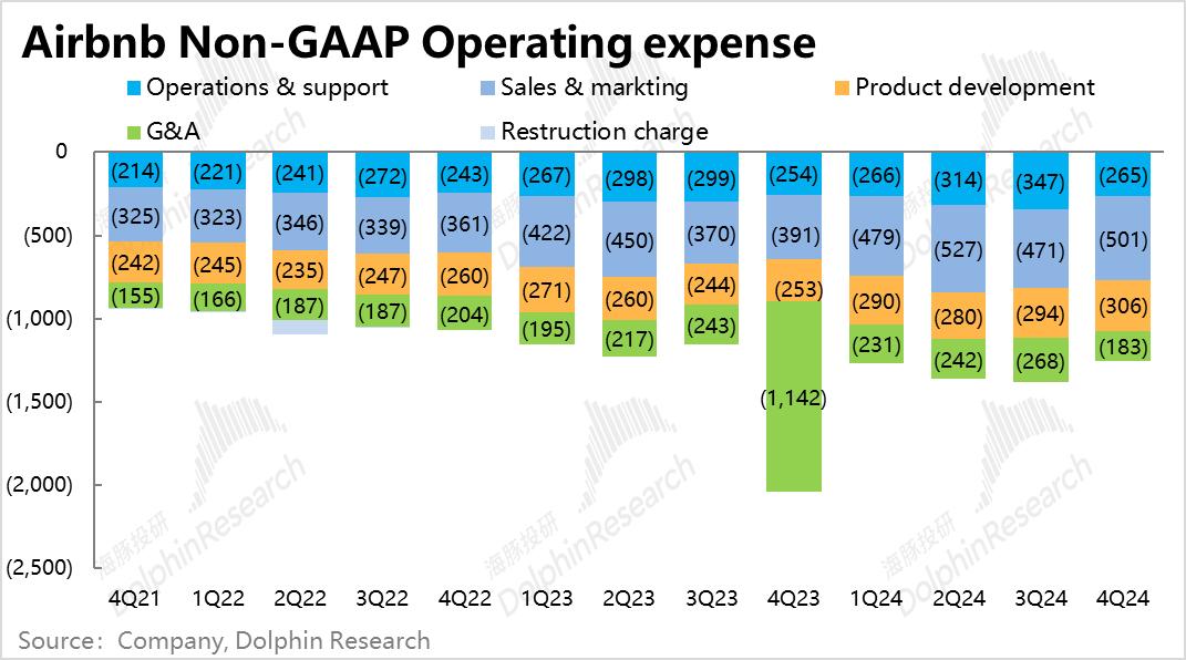 总结以上分析,我们可以看到Airbnb业绩后的15%左右,可以说是暴涨。核心原因是业绩正面打破了之前市场关注的两大问题:1)在增长方面,公司间夜预定量增速明显领先同行业绩的20%以上,持续放缓。全部不到2024年前3个季度的10%。Airbnb的增长是否会保持在不到10%的水平,市场对Airbnb的增长感到担忧,失去了与同行相比的增长优势;