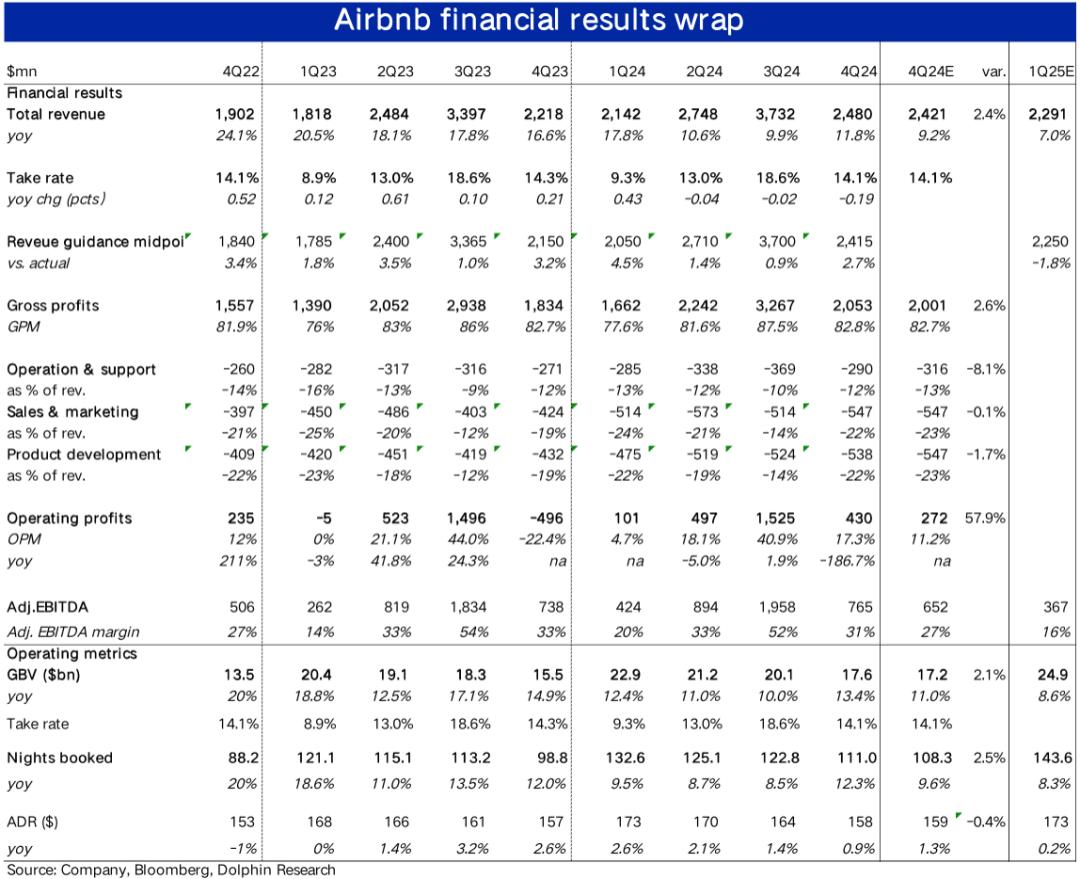 收入方面,由于底层经营数据的强劲增长超出预期,本季度Airbnb确认收入$24.8亿元,同比增长11.8%,同比增长,且明显优于预期的9.2%。