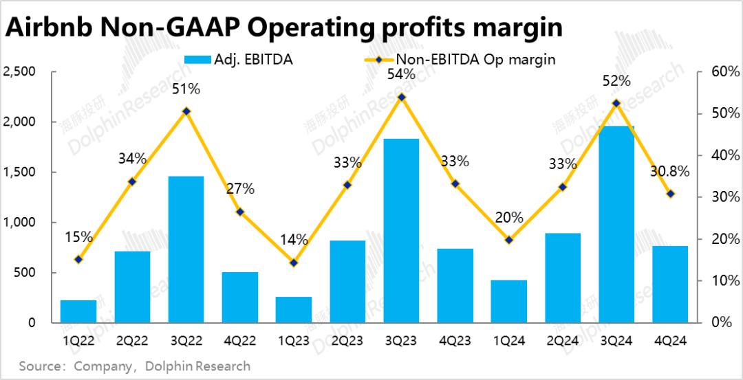 我们可以看到,一方面,4Q之间的夜间预定量环比明显加快,对下一季度增长的指引与去年同期相同,至少没有恶化,有边际改善的迹象。盈利方面,无论是本季度、下季度还是2025年,全年利润率都明显好于预期。展示新业务的投资,不像市场担心的那样会给利润带来这么大的压力。