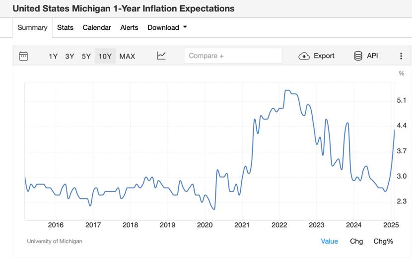 2025年1月,美国CPI同比增长3%,高于预期的2.9%。在此之前,美国的通胀预期从3%以下跃升至4%以上,引起了全球市场的广泛关注。