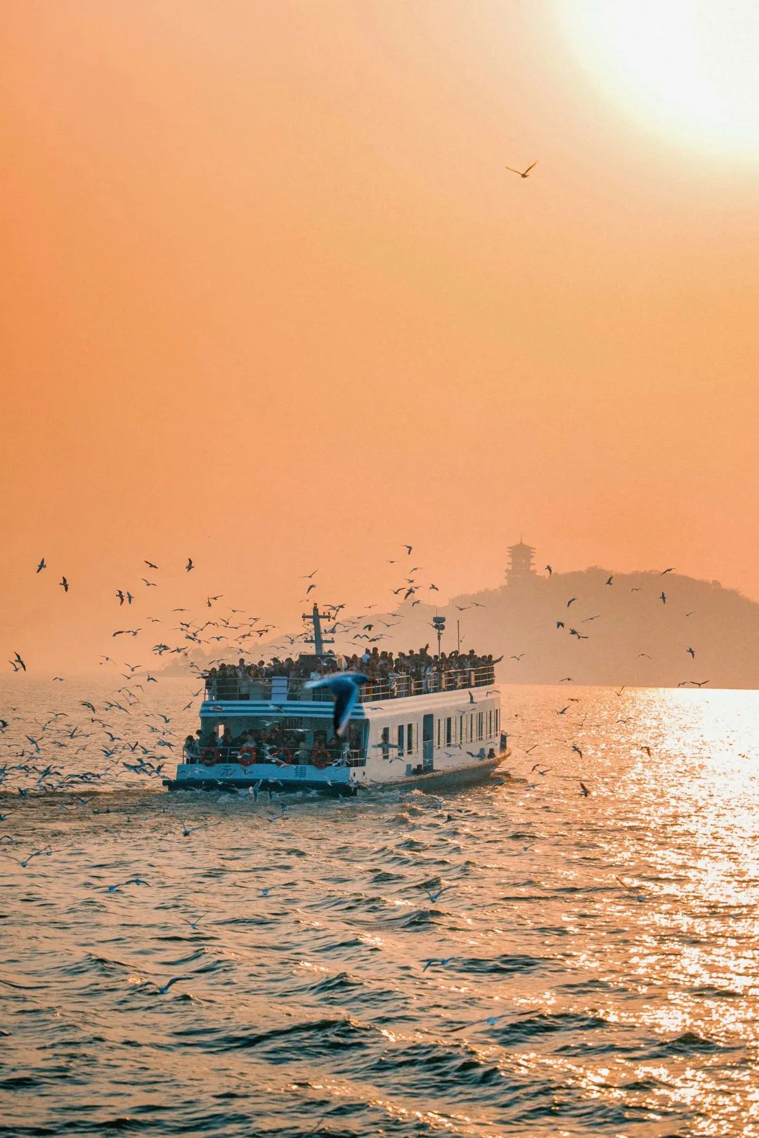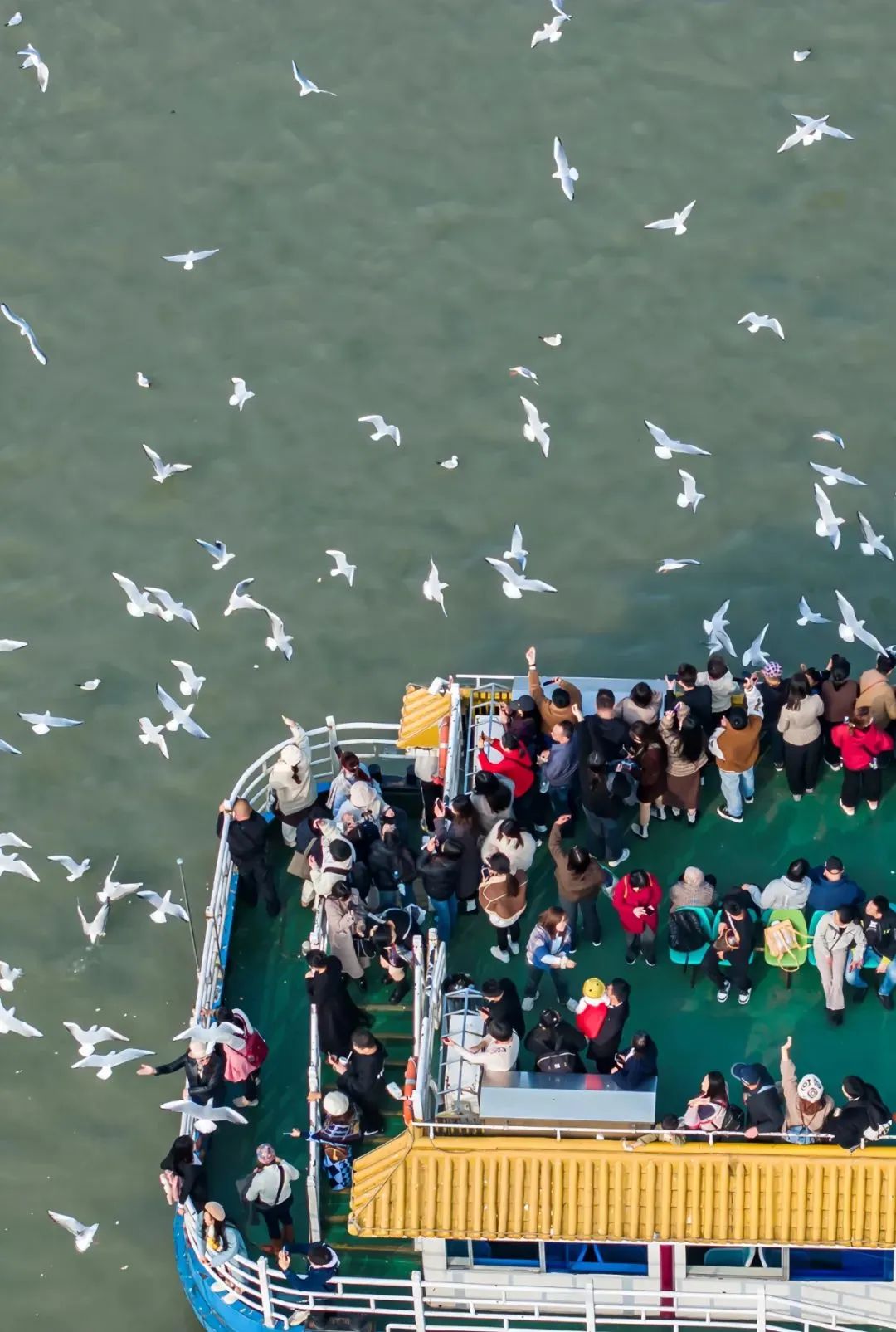 登上游船与回旋边缘的红嘴鸥紧密互动,成为许多游客的重要选择。