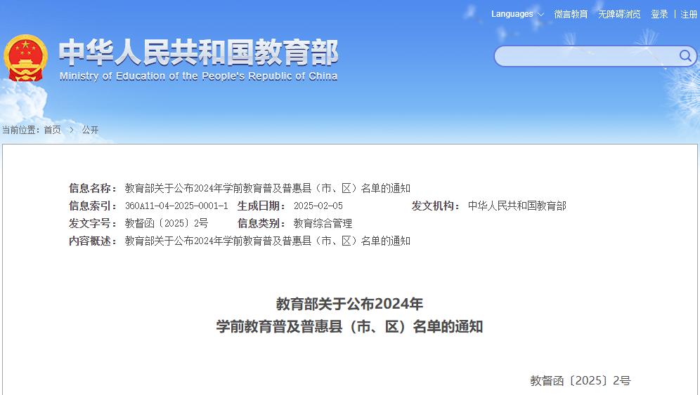 近日,教育部发布通知,2024年认定天津市滨海新区等301个县(市、区)为学前教育普及普惠县,通过县级自评、市级初核、省级评定、中国评定程序。