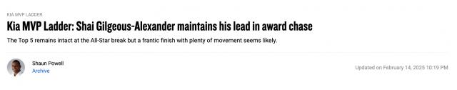 NBA官方MVP榜单:亚历山大六连第一 强大的詹姆斯6杜兰特获得提名